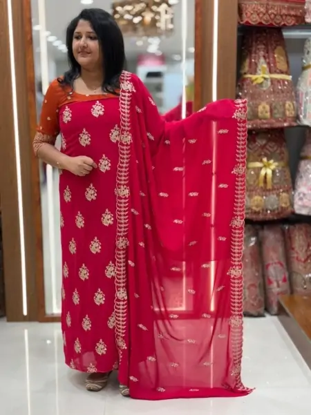 BUDGET FRIENDLY PARTYWEAR UNSTICHED SALWAR SET WITH GOLDEN ZARI DETAILS