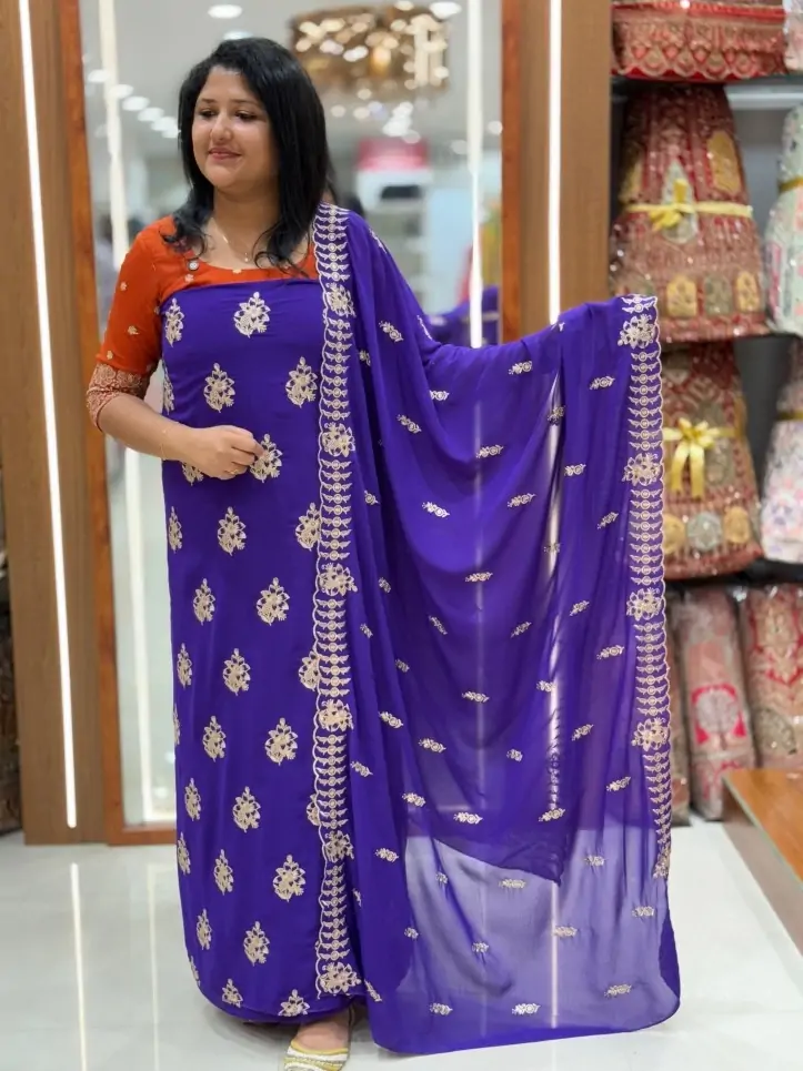 BUDGET FRIENDLY PARTYWEAR UNSTICHED SALWAR SET WITH GOLDEN ZARI DETAILS