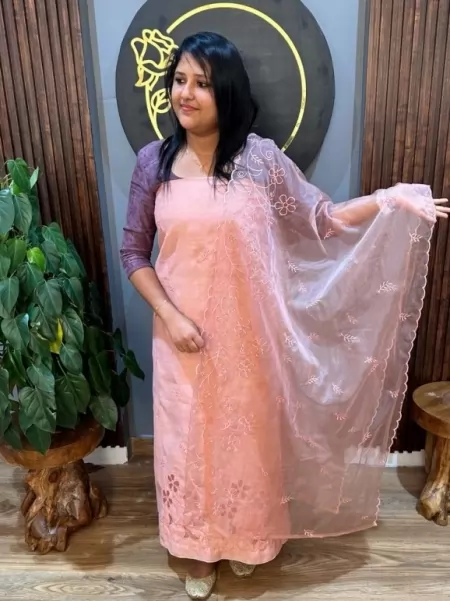 Semi silk Unstiched salwar set with organza duppatta